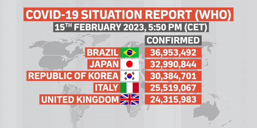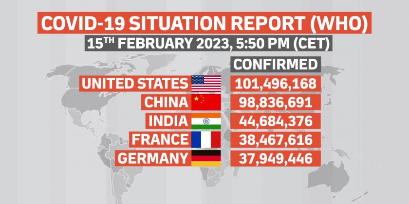 At the time of the report, there’s no patient who died due to the disease while 8 patients have recovered. Confirmed cases of COVID-19 in Myanmar have reached 633,875 with 19,490 deaths and 614,353 COVID-19 patients have been discharged from the hospitals. The World’s worst-hit countries are the United States of America, China, India, France, Germany, Brazil, Japan, the Republic of Korea, Italy and the United Kingdom, according to the World Health Organization. Globally, as of 5:50pm CET, 15 February 2023, there have been over 756 million confirmed cases of COVID-19, including over 6.84 million deaths.