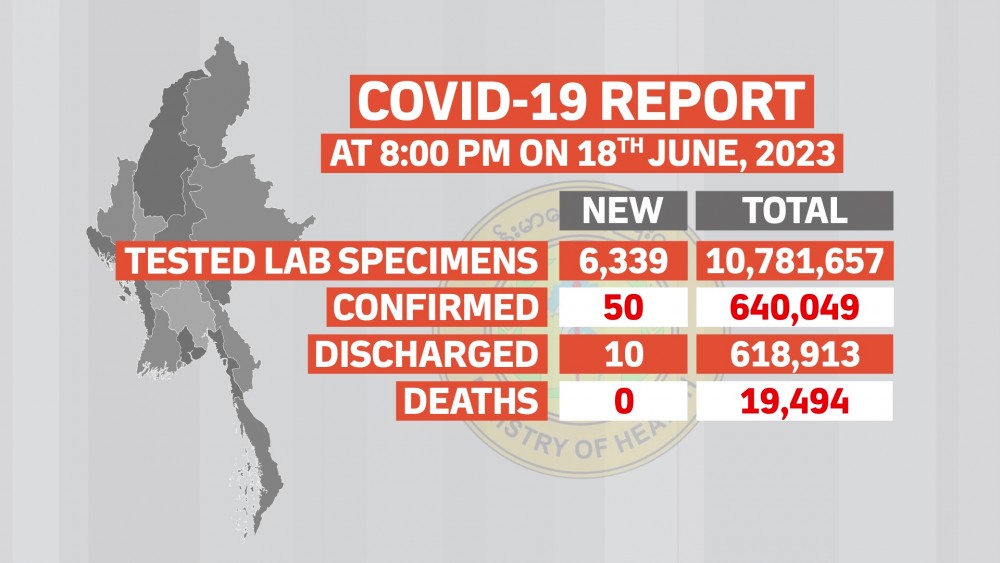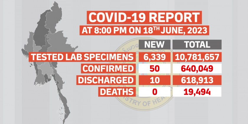 Confirmed cases of COVID-19 in Myanmar reached 640,049 and the death toll stands at 19,494 and the number of recovered patients is 618,913.