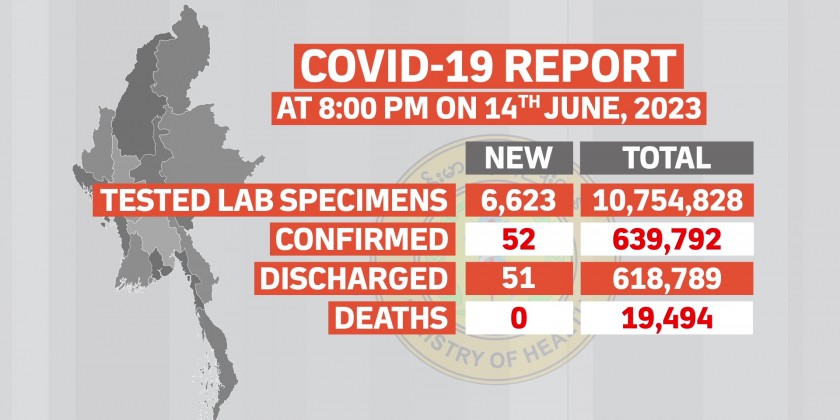 Confirmed cases of COVID-19 in Myanmar reached 639,792 and the death toll stands at 19,494 and the number of recovered patients is 618,789.