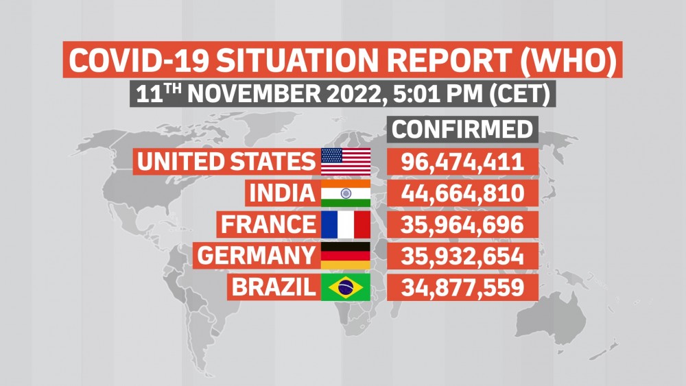 The World’s worst-hit countries are the United States of America, India, France, Germany, Brazil, the Republic of Korea, the United Kingdom, Italy, Japan and Russian Federation, according to the World Health Organization. Globally, as of 5:01pm CET, 11 November 2022, there have been over 630 million confirmed cases of COVID-19, including over 6.58 million deaths.
