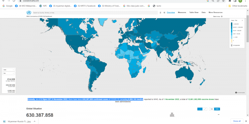 The World’s worst-hit countries are the United States of America, India, France, Germany, Brazil, the Republic of Korea, the United Kingdom, Italy, Japan and Russian Federation, according to the World Health Organization. Globally, as of 5:18pm CET, 9 November 2022, there have been over 630 million confirmed cases of COVID-19, including over 6.58 million deaths.