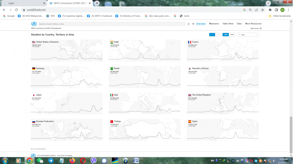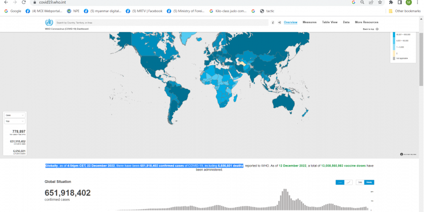 The World’s worst-hit countries are the United States of America, India, France, Germany, Brazil, the Republic of Korea, Japan, Italy, the United Kingdom and the Russian Federation, according to the World Health Organization. Globally, as of 4:54pm CET, 23 December 2022, there have been over 651 million confirmed cases of COVID-19, including over 6.65 million deaths.