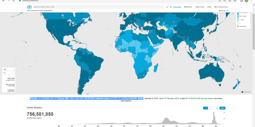The World’s worst-hit countries are the United States of America, China, India, France, Germany, Brazil, Japan, the Republic of Korea, Italy and the United Kingdom, according to the World Health Organization. Globally, as of 8:47pm CET, 17 February 2023, there have been over 756 million confirmed cases of COVID-19, including over 6.84 million deaths.