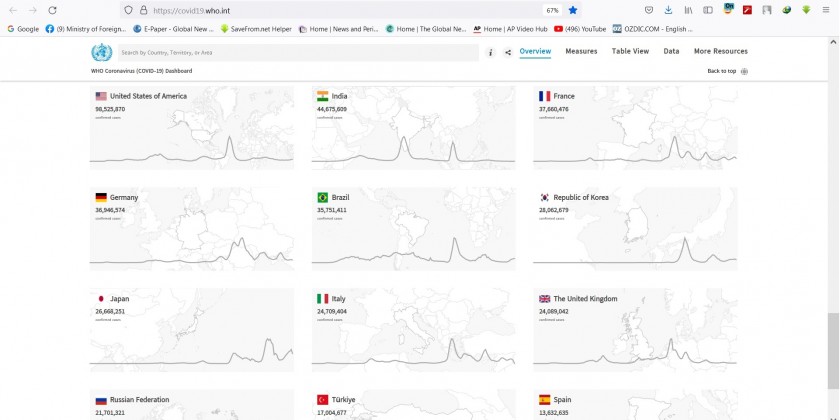 The World’s worst-hit countries are the United States of America, India, France, Germany, Brazil, the Republic of Korea, Japan, Italy, the United Kingdom and the Russian Federation, according to the World Health Organization. Globally, as of 5:07 pm CET, 16 December 2022, there have been over 647 million confirmed cases of COVID-19, including over 6.64 million deaths.