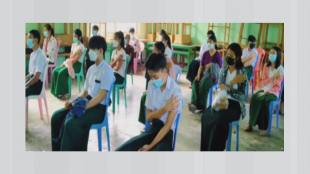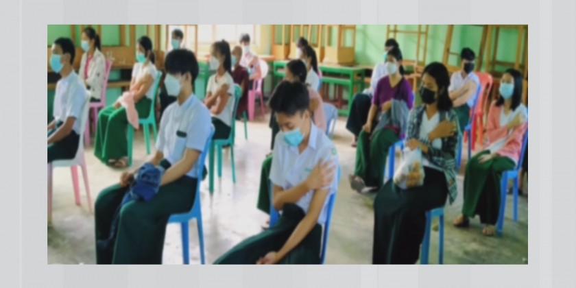 Vaccination programme for basic education students aged 12 and above continues across the country. Till the 24th of October, 722 students in Dhakhinathiri Township, 1,348 in Paingkyon, 1,500 in Tamu, 3,690 in Mudon, 7,297 in Maungdaw, 6,063 in Mrauk-U and 2,709 in Pathein received the first dose of COVID-19 vaccines.