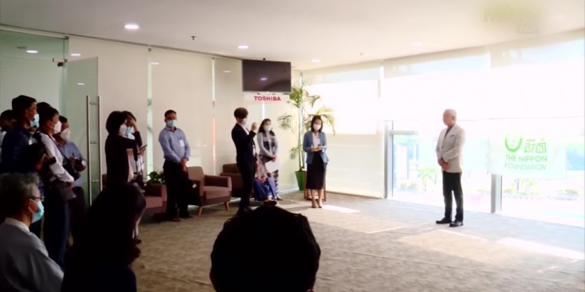 During the ceremony at Yangon International Airport, Executive Director of the Nippon Foundation Mr. MORI Yuji handed over the 1 million Covaxin COVID-19 vaccines to President of the Myanmar Red Cross Society Dr. Maung Maung Myint.