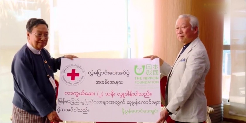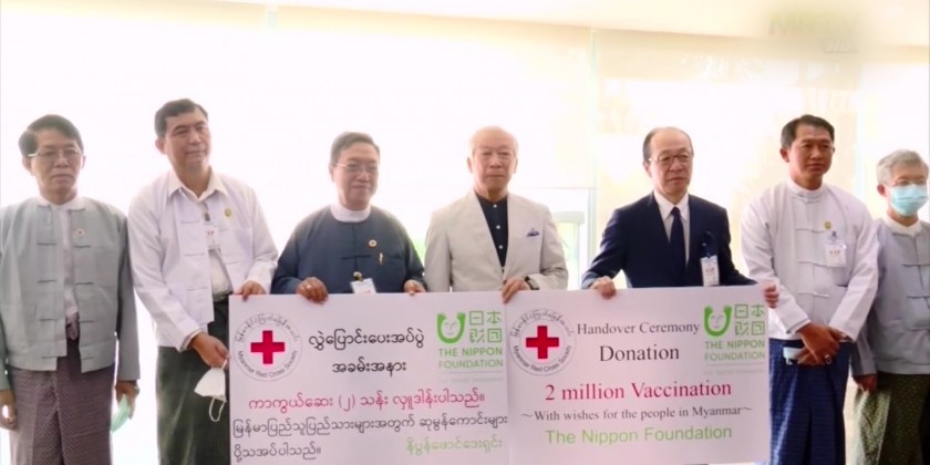 The handover ceremony of 1 million Covaxin COVID-19 vaccines donated by the Nippon Foundation of Japan to Myanmar through the Myanmar Red Cross Society was held on Sunday.