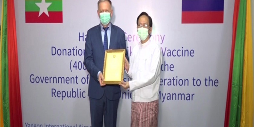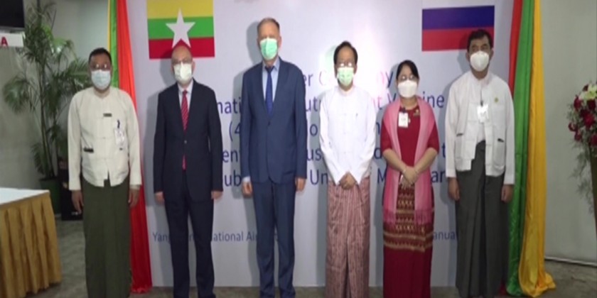 During the hand-over ceremony at Yangon International Airport, Russian Ambassador to Myanmar Dr. Nikolay Listopadov stressed that the COVID-19 vaccine donation is to strengthen Russia-Myanmar relations and to help Myanmar fight against the COVID-19 disease.