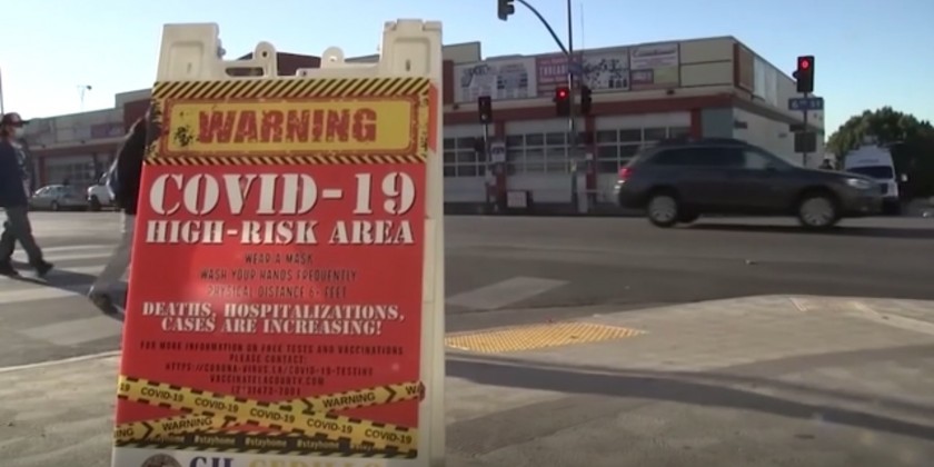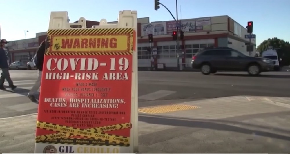 COVID-19 "warning" signs have been posted in some areas of Los Angeles considered a high-risk for the virus, according to local media reports. The signs, in multiple languages, are located in areas that have seen high rates of coronavirus, according to a report from KABC-TV.