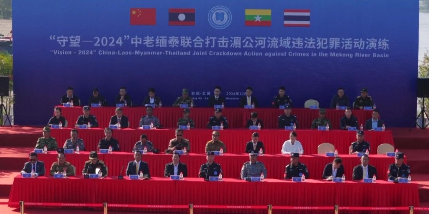 A crackdown action against crimes in the Mekong River Basin was held in the Mengmo waters of Laos on Wednesday to enhance law enforcement cooperation among the four regional countries.