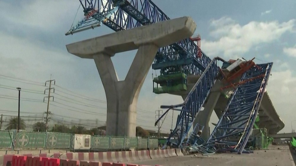 A team of engineers and police are investigating the cause of the collapse, which authorities suspect was caused by an overloaded girder. Construction accidents are common across Thailand, with business operators often ignoring safety requirements and operating without permits. In March, seven people were killed when a crane fell during construction work at a factory east of Bangkok.