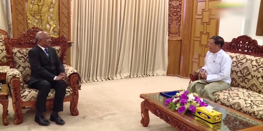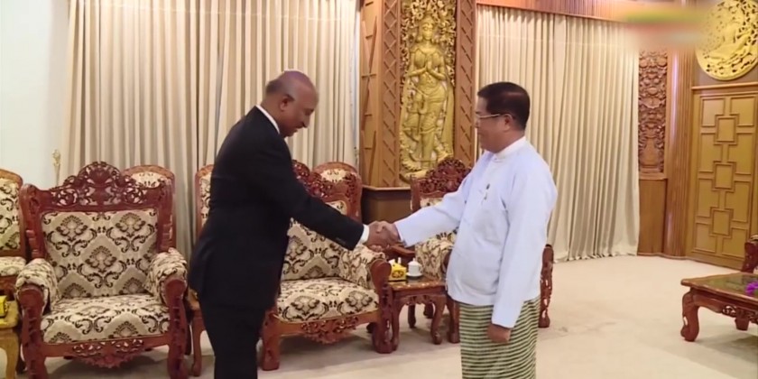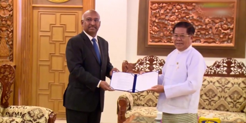 DR. Rangaiyan Gurumurthy, Country Director of the Office of the Joint United Nations Programme on HIV/AIDS (UNAIDS) in Myanmar, paid a courtesy call and presented his Credentials to U Than Swe, Union Minister for Foreign Affairs, at the Ministry of Foreign Affairs at 4 pm in Nay Pyi Taw on 9 February 2023. Also present at the meeting were senior officials of the Ministry of Foreign Affairs.