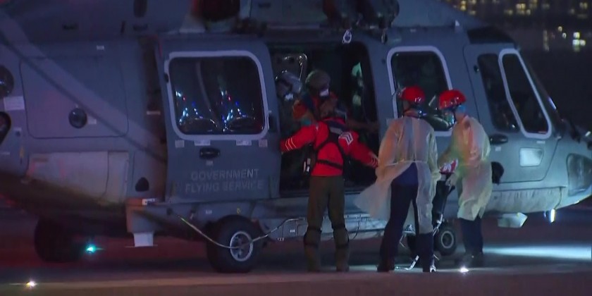 The Government Flying Service sent a fixed-wing aircraft and two helicopters with doctors aboard to the Panama-registered Chuang Yi vessel to transport the injured to a hospital in the city.