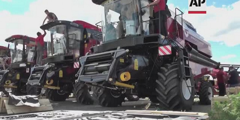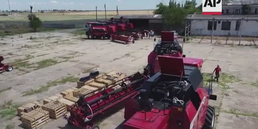 The first of the 85 planned Russian and Belarusian-made machines are headed to the area where few functioning equipment was left after a few months of Russia's occupation. A representative of Zaporizhzhia military administration who refused to identify himself said that the contribution should not interfere with Crimea's own harvest.