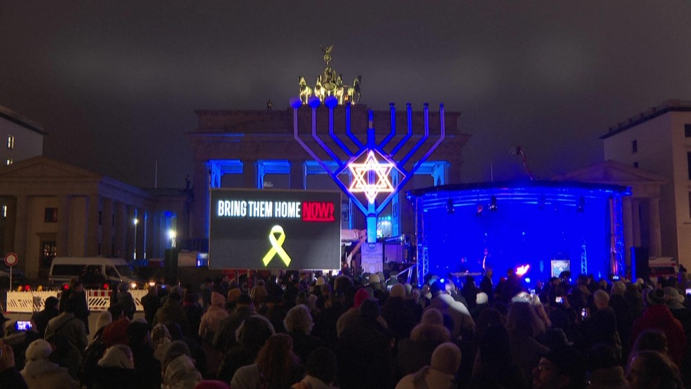 Crowd gathers in Berlin for lighting of Europe's largest Hannukah menorah