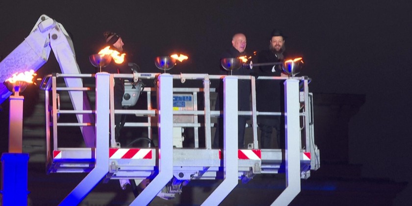 The ten-meter-high menorah, known as the largest in Europe, stood illuminated against the historic backdrop of Pariser Platz, symbolizing hope, resilience, and the enduring spirit of Jewish life in Germany. The Chabad Jewish community organized the ceremony.