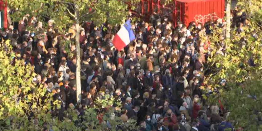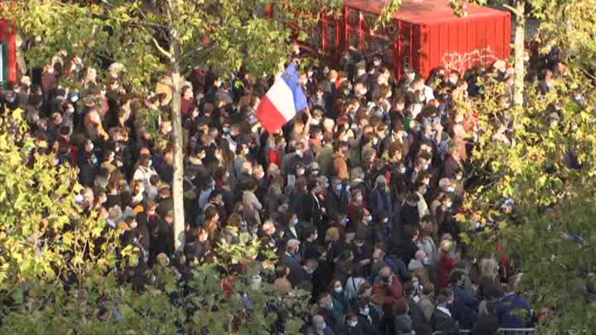 In Paris, crowds of people rallied on Sunday to pay tribute to a history teacher who was beheaded near the French capital after discussing caricatures of Islam's Prophet Muhammad with his class. Samuel Paty was beheaded on Friday by a 18-year-old Moscow-born Chechen refugee who was shot dead by police. The gathering came hours after U.S. President Donald Trump sent France a message of solidarity in the wake of the attack. French Prime Minister Jean Castex stood with citizens, associations and unions demonstrating Sunday on the Place de la Republique in Paris in support of freedom of speech and in memory of the 47-year-old slain teacher. French authorities say they have detained an 11th person following the killing.