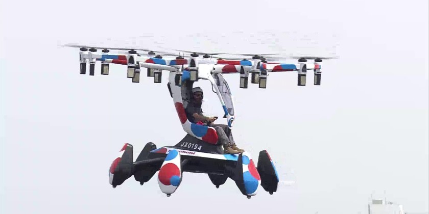 They thronged the Grand Ring, which is the symbol of the Expo, as well as pavilions of foreign countries. A demo flight of a “flying car” was shown to visitors at around 10:30 A.M. local time at a take-off and landing site.  The vehicle was developed using drone technology and is designed to carry people and cargo. The flying car circled and hovered for about nine minutes while operators controlled it with levers.