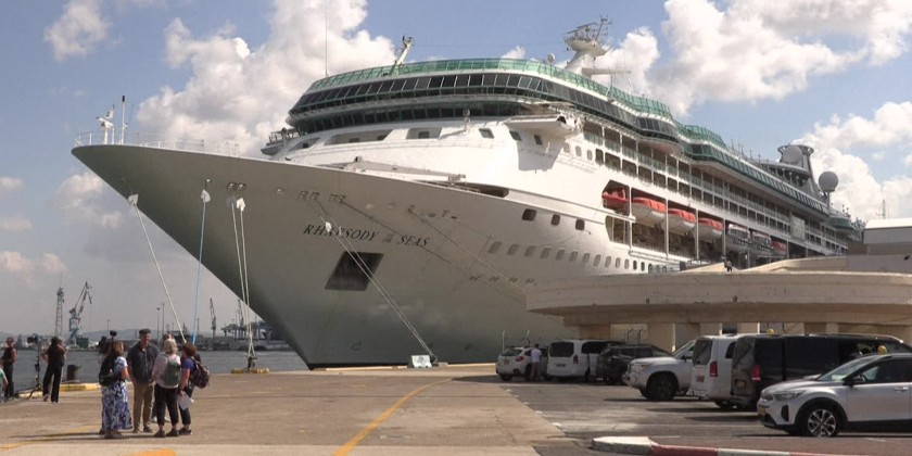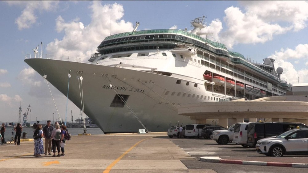 The Rhapsody of the Seas cruise ship send by United States government is docked in the Israeli port of Haifa on Monday to evacuate its nationals.