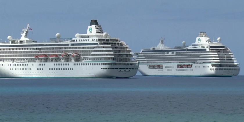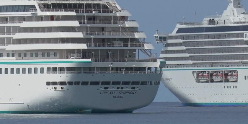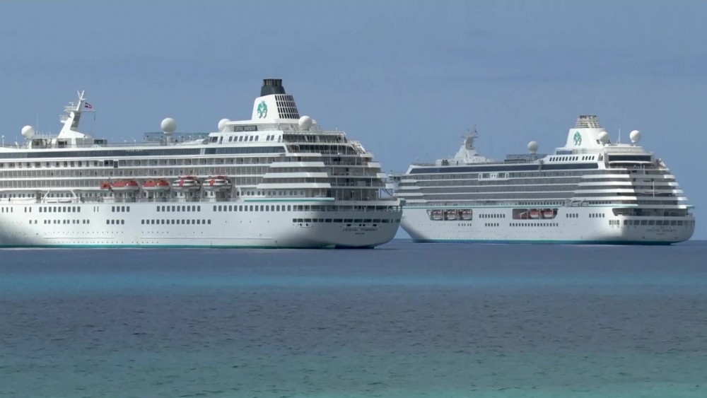 Two vessels from the Crystal Cruise Company were anchored off the coast of Freeport, Bahamas on Saturday, following journeys of itinerary changes and offloading passengers. A legal dispute over millions of dollars in fuel bills prompted their multiple route changes.