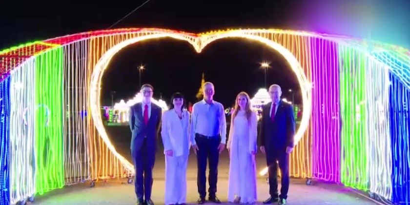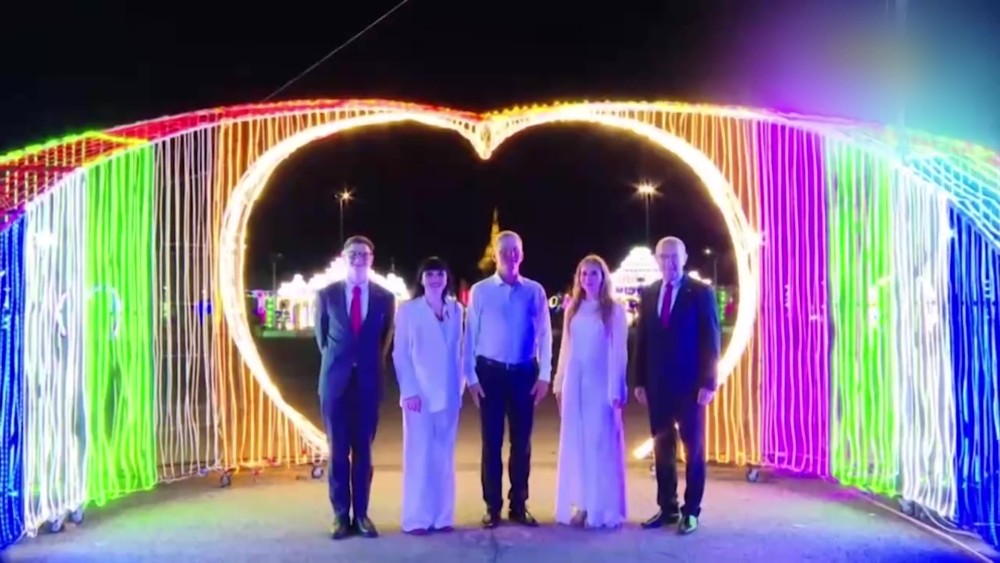 The group performed entertainment shows at the National Theater last night and visited the illuminated decorations in the People's Park of Yangon City as a commemoration of the Thadingyut Festival.