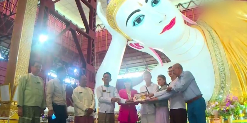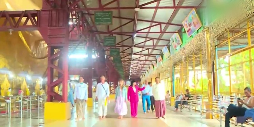 After that, they visited and admired both the Botataung Kyaikdaeatt Hsan-Daw-Oo Pagoda and the Khyauk Htatt Kyee Pagoda, joyfully taking commemorative photos with the devotees.