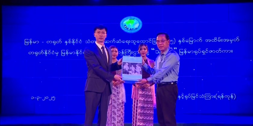 Marking the 75th Anniversary of Myanmar-China Diplomatic Relations, a ceremony to handover a Myanmar Film “Thu Chit” to the Ministry of Information was held at Myanma Radio and Television in Yangon on 1st March.