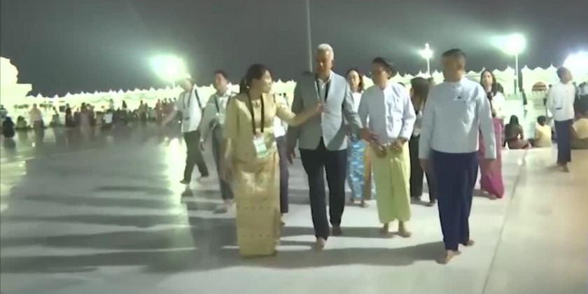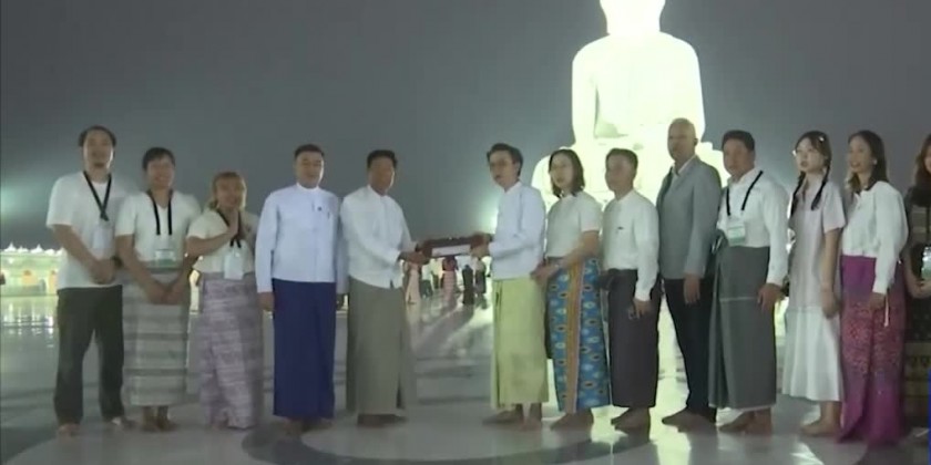 Under the arrangement of the Ministry of Hotels and Tourism, Picturesque Myanmar Group Co,. Ltd facilitated the tour to attract more tourists, welcoming a 15-member crew from Thailand. They paid homage to the world's tallest Maravijaya Buddha Image and took a comprehensive tour around Buddha Park.