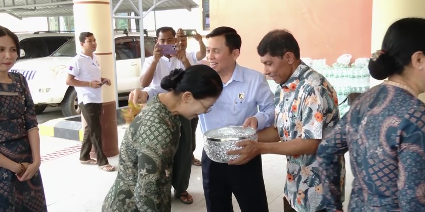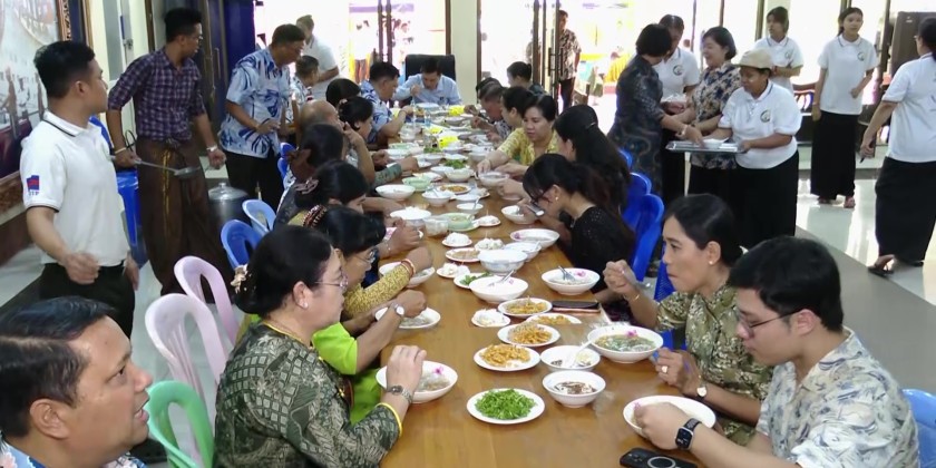 Following this, the Union Minister and the Deputy Ministers performed the traditional water splashing with the staff and their families in accordance with Myanmar's customs. Traditional Myanmar New Year snacks were also served as refreshments.
