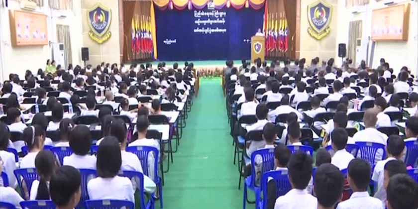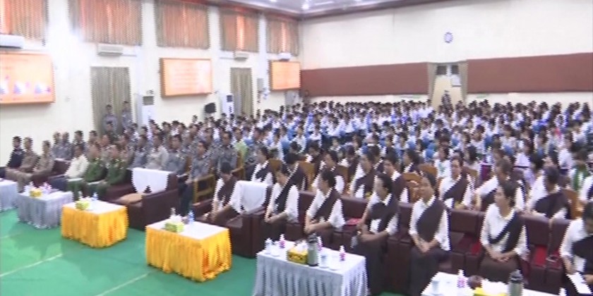The opening ceremony of Buddhist cultural training course for the offspring of the personnel from the forces and directorates under the Ministry of Home Affairs was held at the Areindama Hall of Myanmar Police Force Headquarters in Nay Pyi Taw in the afternoon on Wednesday and attended by the Deputy Prime Minister Union Minister for Home Affairs Lt. Gen. Soe Htut and wife, Deputy Minister Ma-J Gen. Toe Yi and wife, Deputy Minister and Chief of Myanmar Police Force Ma-J Gen Zin Min Htet, senior officials, training instructors and trainees.