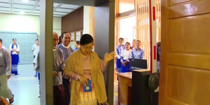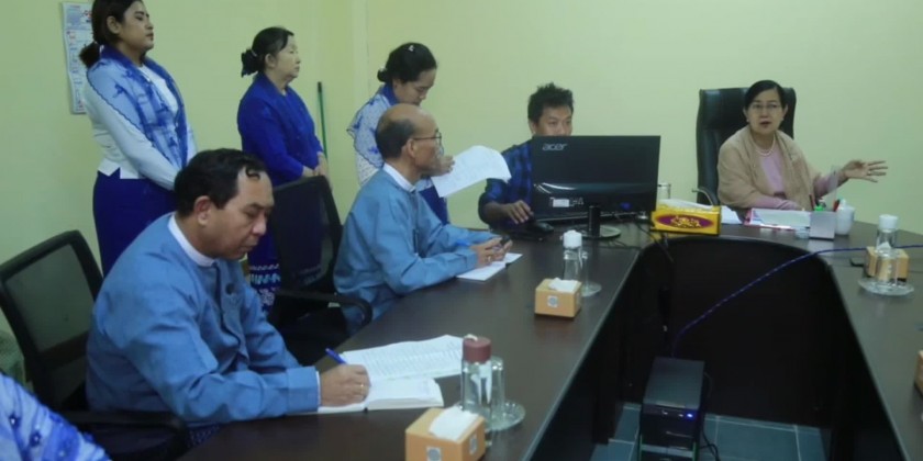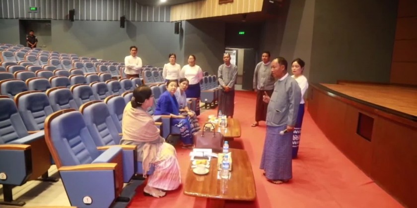 Deputy Minister for Religious Affairs and Culture Daw Nu Mra Zan accompanied by concerned officials inspected the National Theatre (Yangon) on Saturday morning and heard reports on operations, cleaning and greening of the surrounding of the office, staff housing and theatre and the condition of air conditioners and provided necessary instructions.