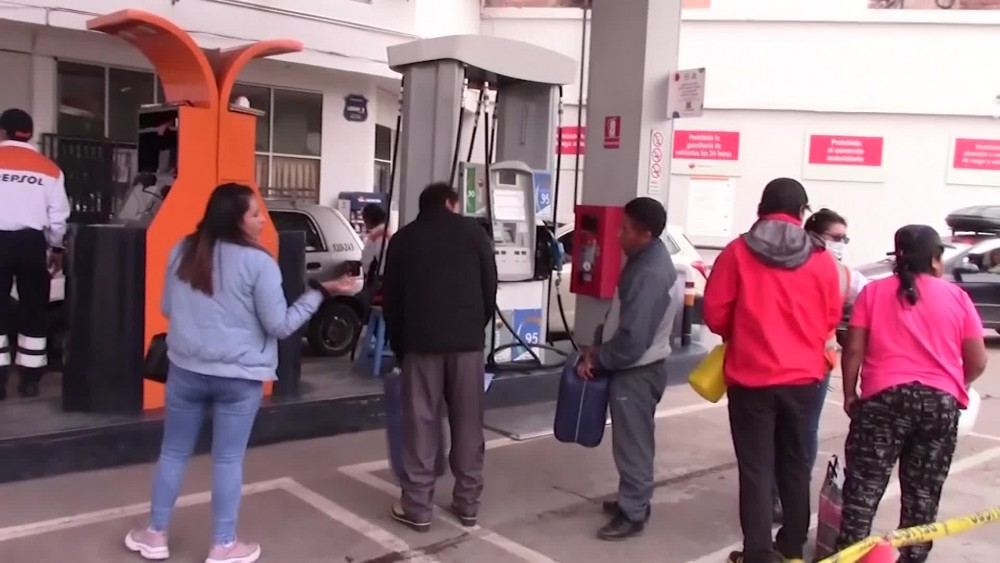 Long queues of people waited outside a petrol station that was still open in Cusco on Thursday. Road blockades have caused shortages throughout Peru, amid a wave of protests and political unrest.Most of the petrol stations in the popular tourist city, that's the gateway to Machu Picchu, have closed their doors, leaving signs saying there’s no fuel or gas.