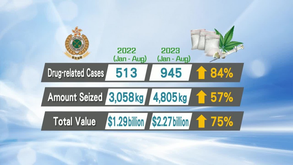 Hong Kong Customs held a five-day workshop, inviting representatives from 24 mainland and international law enforcement agencies to share the latest drug trafficking trends and tactics. In the first eight months of this year, the number of drug busts surged 85 percent with the most notable increase involving cannabis cases.