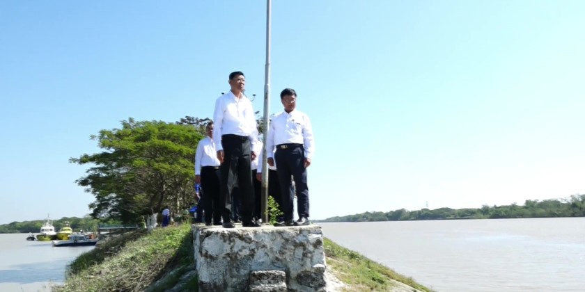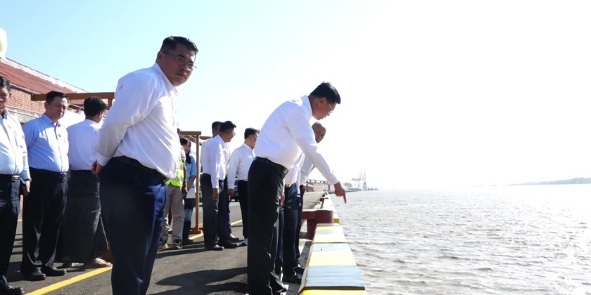 The Union Minister and party then proceeded to Sule jetty to inspect the installation of the Weight Bridge and renovation works. They also oversaw the jetties along Twantay Canal in SarParChaung in Dala Township, including vessel entry and exit points, the Twantay Canal Development Project site, and the LetPanKone Customs Post at 3.5 miles. After receiving briefings from officials, the Union Minister instructed a focus on achieving customs targets, and expediting the Korea-funded Twantay Canal Development Project.