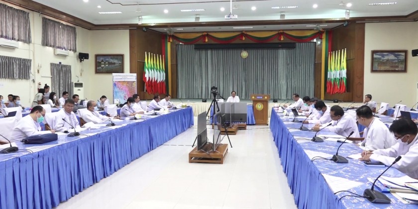 Led by Union Minister for Health Professor Dr. Thet Khaing Win, a coordination meeting on healthcare services and repairing buildings in cyclone affected Rakhine State on Monday.