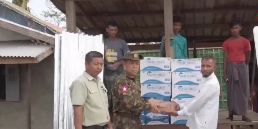 And Lt-Gen Aung Kyaw Moe together with officials arrived at Sittwe Township and assisted foodstuffs, clothes, corrugated iron sheets, tarpaulin sheets and construction equipment to cyclone affected victims.