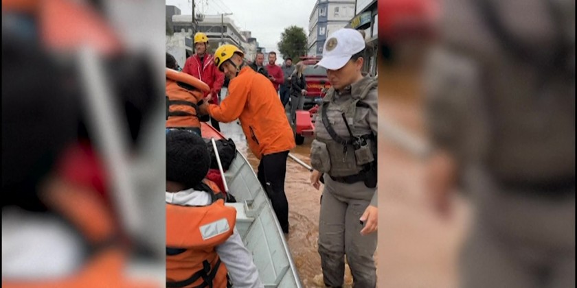 In Mucum, a small town of 5,000 people, hundreds had to be rescued from their rooftops as the Taquari river flooded more than 85 percent of the city. Helicopters and vessels of the Civil Defense, the Federal Highway Police and the Brazilian Army have been rescuing survivors from trees and rooftops.