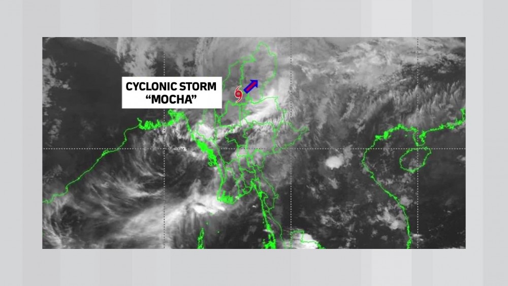 Department of Meteorology and Hydrology issued the cyclonic storm warning No. 33/2023 at 7 am on Monday. It states that according to the observations at 5:30 am M.S.T, the Severe Cyclonic Storm “MOCHA” crossing interior near Matupi of Chin State and moving to North-Northeastwards has weakened into a Cyclonic Storm.