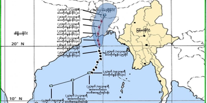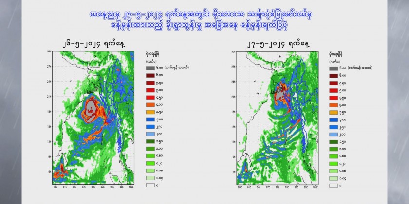 Under the influence of Cyclonic Storm, people should be aware heavy rain with strong wind, flash flood and landslide in the hilly areas and near small rivers and also domestic flight, trawlers, vessels and ships off and along Myanmar Coasts.