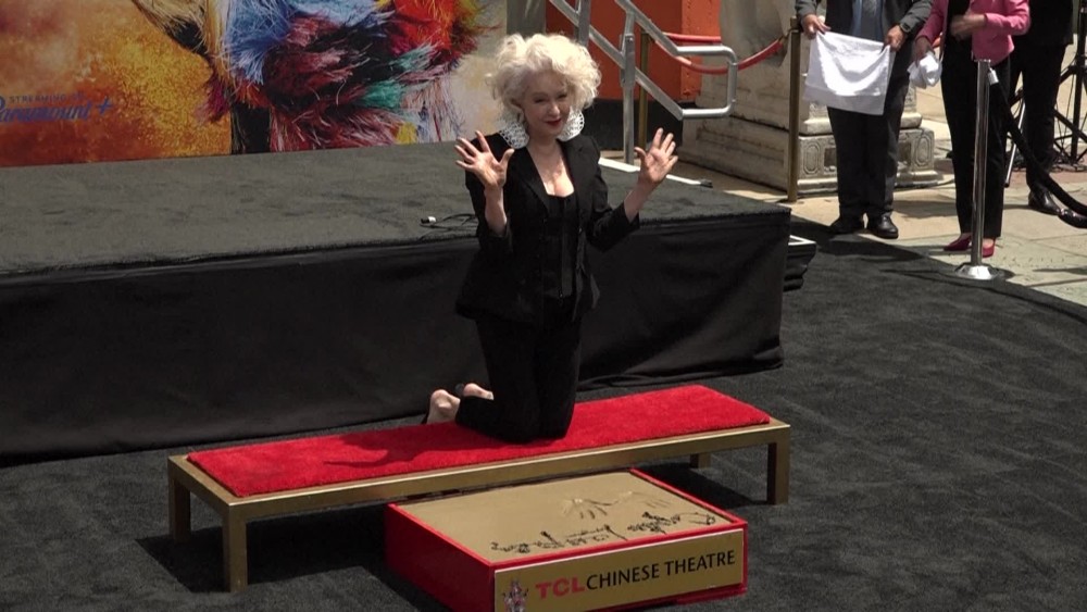 Cyndi Lauper placed her hand and footprints in wet cement outside the TCL Chinese theatre in Los Angeles on Tuesday in a ceremony celebrating the "Girls Just Want To Have Fun" singer's life and career.