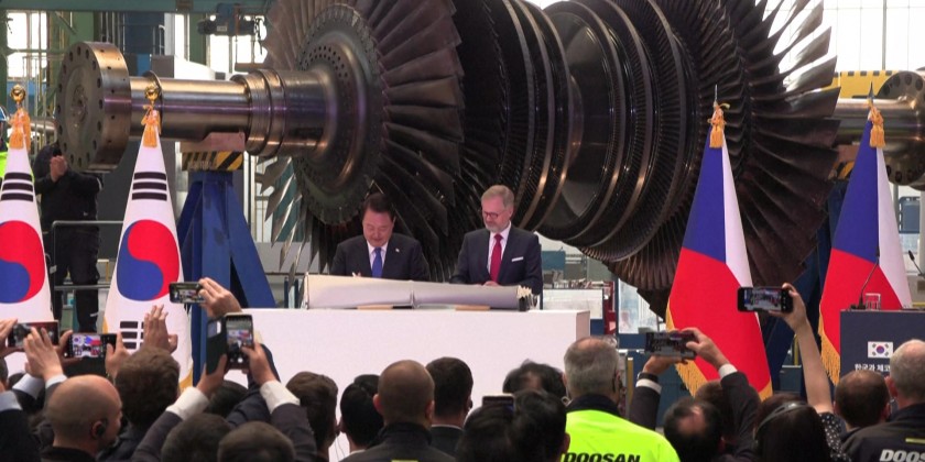 South Korean President Yoon Suk Yeol and Czech Prime Minister Petr Fiala visited a Skoda nuclear engineering factory in Plzen as the two countries signed 12 cooperation deals on a multi-billion-dollar tender for Korea's KHNP to build two reactors. Despite the agreements, the main contract has yet to be signed, with the tender contested by US giant Westinghouse and France's EDF.