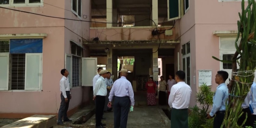 Union Minister for Cooperatives and Rural Development U Hla Moe, accompanied by officials conducted a field inspection of Kantkaw, Padauk and Bu Kwe staff housings in Zabuthiri Township on Sunday following severe Mandalay earthquake damage.