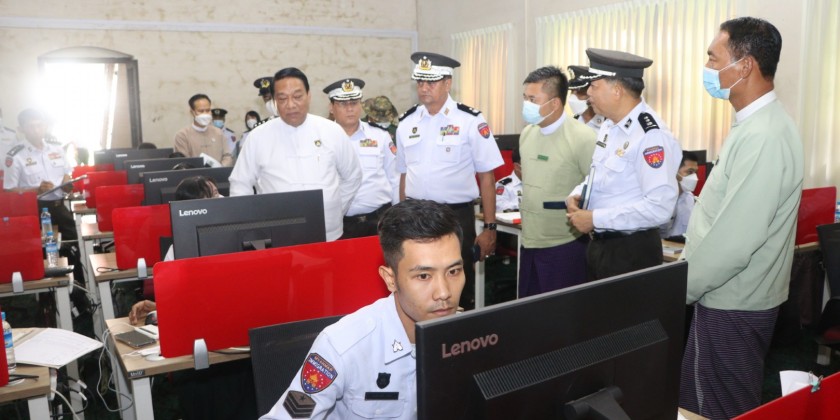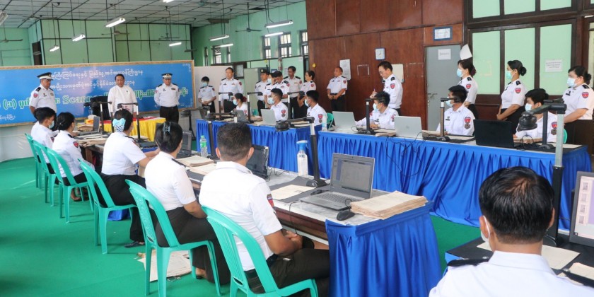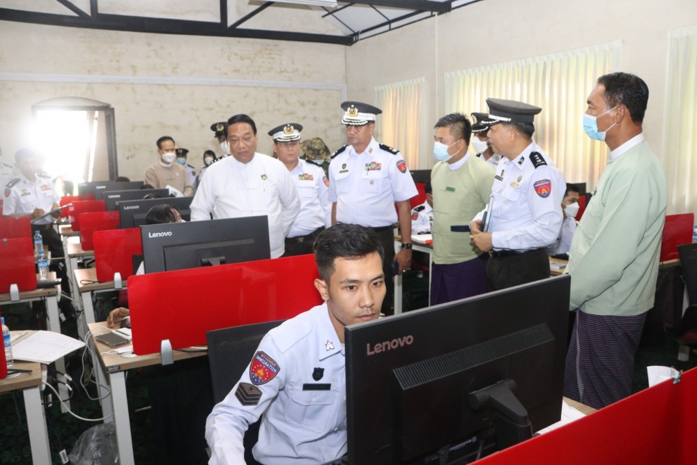 The Union Minister for Immigration and Population U Khin Yi together with the officials concerned visited the department of national registration and citizenship situated in Kyaukdata Township, Yangon Region and the director-general U Htein Win clarified the keeping the individual citizen’s personal record form-1 and maintenance of citizen record form-1 of regions and states with digital system by scanning them and the union minister coordinated necessaries.