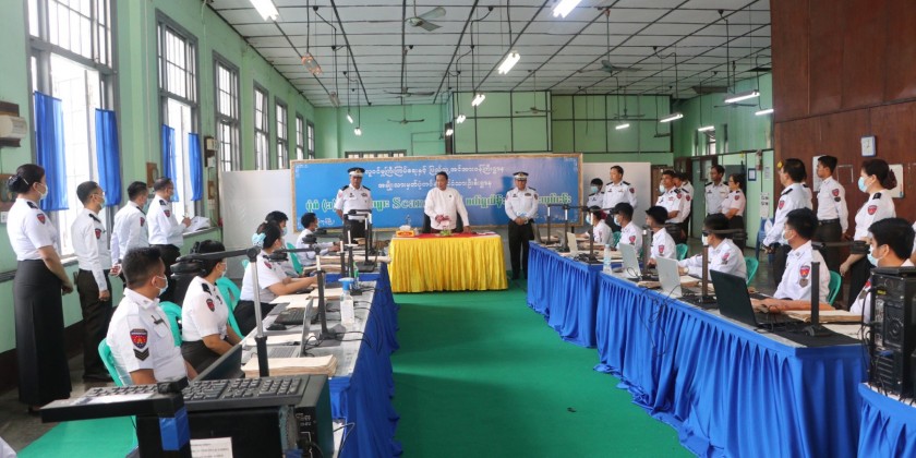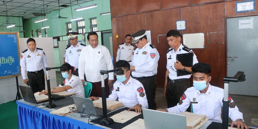 Afterward, the union minister inspected scanning and recording form-1 and maintenance of form-1 documents in the record room and tended the necessaries. Later, the union minister visited Government Technical Institute in Insein Township and inspected data entry the household list form (66/6) into the computer and sending them to the head office in Nay Pyi Taw. Next, the union minister gave necessary guidelines to the persons who are conducting the work process, provided foodstuff and cordially greeted.