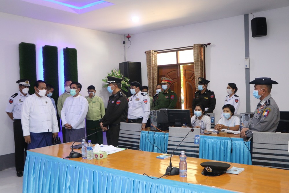 The Union Minister for Immigration and Population U Khin Yi together with the Bago Region Chief Minister U Myo Swe Win and officials viewed the data entry process of the data from the household list form (66/6) into the computer and sending them to the server in the head office in Nay Pyi Taw by the staff members of Bago Township staff officer’s office under the Ministry of Immigration and Population, staff from the related departments and volunteer youth at the meeting room of Bago district general administration department in the morning on July 27.