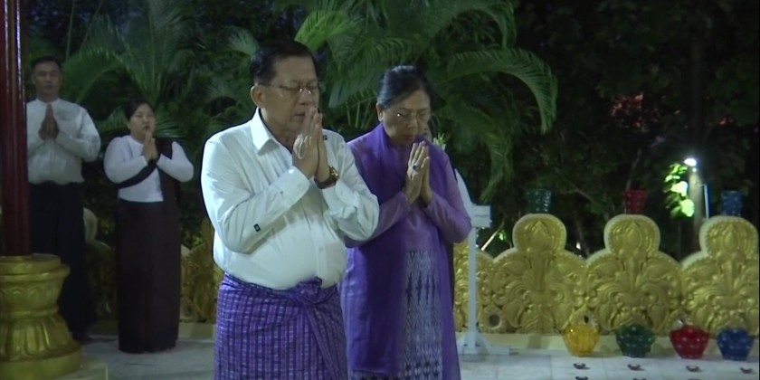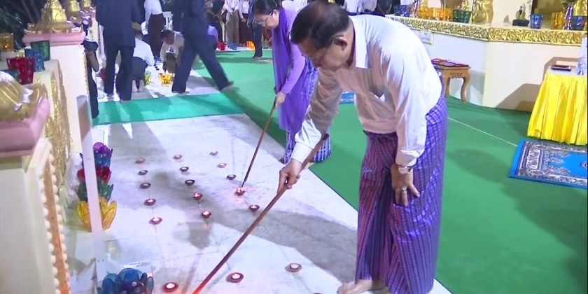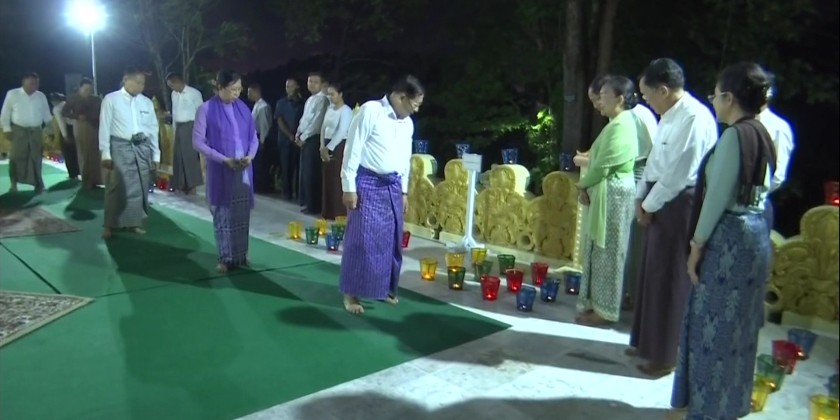The Chairman of the State Security and Peace Commission, Commander-in-Chief of Defence Services Senior General Min Aung Hlaing, along with his wife Daw Kyu Kyu Hla, the SSPC Vice-Chairman, Deputy Commander-in-Chief of Defence Services, Commander-in-Chief (Army),Vice-Senior General Soe Win and his wife Daw Than Than New, SSPC member Executive Chief General Aung Lin Dwe and wife, SSPC Secretary Joint- Executive Chief General Ye Win Oo and wife, SSPC member Chief of General Staff (Army, Navy, Air) Genera; Kyaw Swar Lin and wife, Union-level dignitaries and their wives, Union Ministers and their wives and senior Tatmadaw officials from the Office of the Commander-in-Chief and their wives, celebrated the Tazaungmone Full Moon Day (Samannaphala Day) and the Tazaungdaing Festival of Lights with joy and delight.
