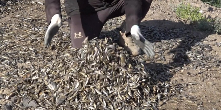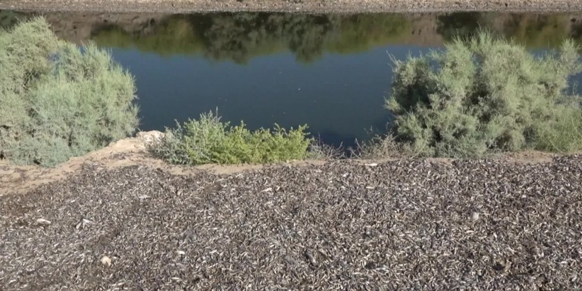 Thousands of small fish washed up on the banks of the AmshanRiver in Majar al-Kabir, an area in Maysan province that borders Iran.Iraq's agriculture ministry on Sunday announced it was forming a committee to look into the causes of the fish deaths.