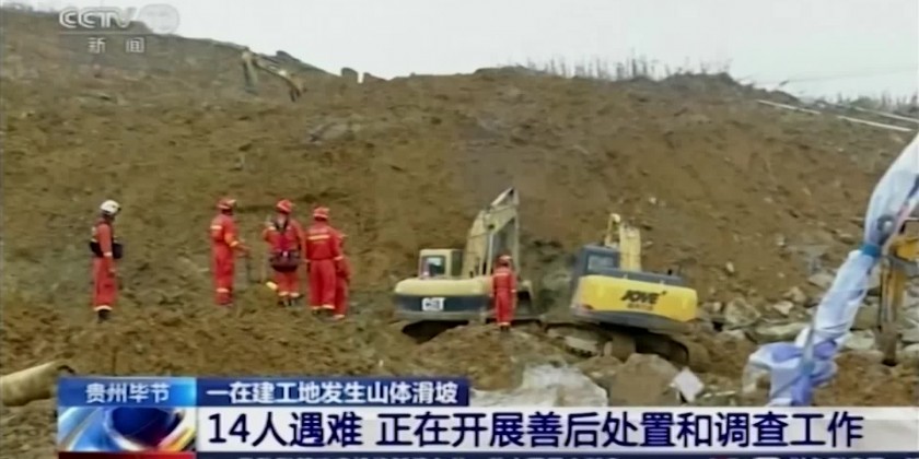 A landslide at a construction site in southwestern China has killed 14 people and injured three others, media reports said Tuesday.