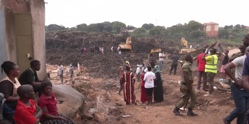 After torrential rain in recent weeks, a huge mound of garbage at the city's only landfill site collapsed late on Friday, crushing and burying homes on the edge of the site as residents slept.