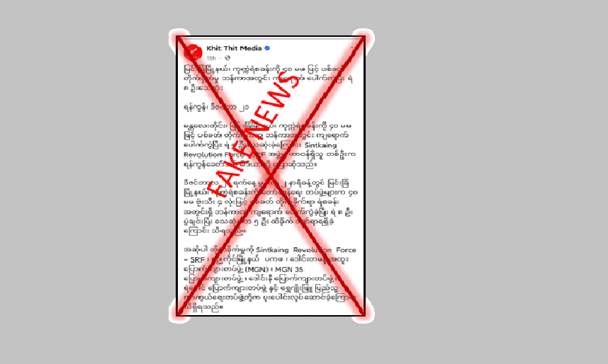 False information circulating from the illegal and destructive media outlet, KhitThit, alleges that eight members of the police force died and five others were injured in an explosion of a 40 MM bomb in their bunker, supposedly launched by terrorists at the Kokke Police Station in Myin Chan Township, Mandalay Region on December 21st.